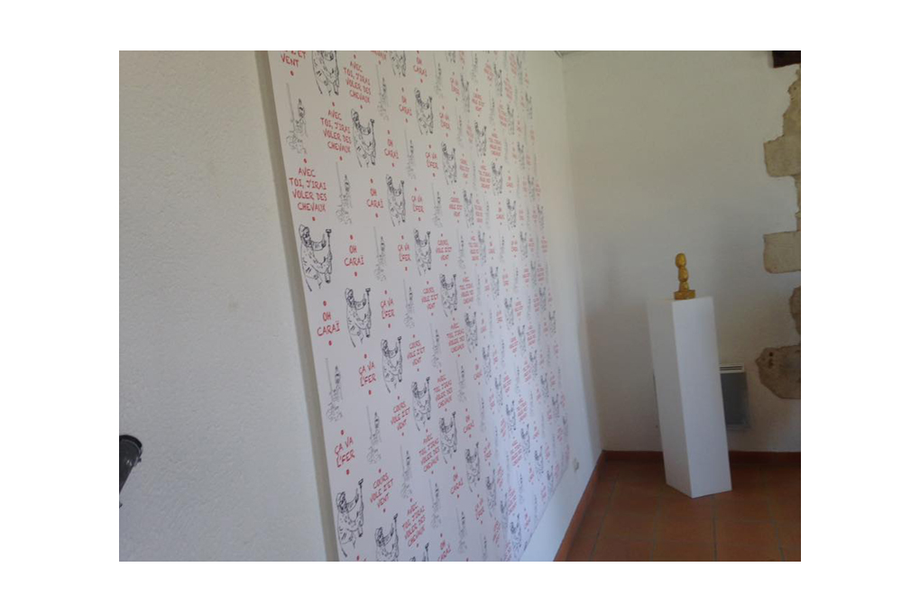 Pour moi, le papier peint est un sujet qui questionne à la fois l’occupation de l’espace et du regard : construire l’exubérance d’un mur, mais aussi le dessin et sa reproductibilité, tout comme le travail du multiple mise en perspective de l’édition unique. Mais au fond cette pratique permet d’explorer au plus profond le geste productif de l’« artiste travailleur comme les autres ».
