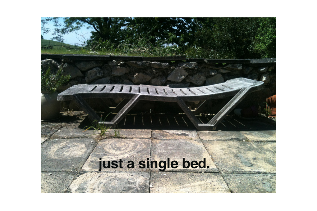 La série de photographies « Bed #1 » est une série de photos prises à plusieurs semaines d’intervalle avec le même cadre approximatif. Seul le texte change, créant ainsi une narration et une fiction d’une faible relation avec l’image…