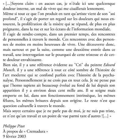 Texte d’intention à propos de // Declaration of Intent for – « Cremadura » 2003