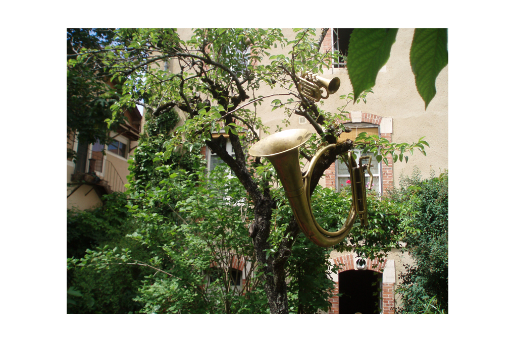 Performance avec installation sonore auto-amplifiée, créée pour l’édition 2009 du festival Cahors Juin Jardin. Avec l’aide de l’équipe de Radio FMR – Toulouse et du célèbre DJ créateur de voyages sonores et musicaux : Antoine Guy, alias « DJ No Breakfast »…
